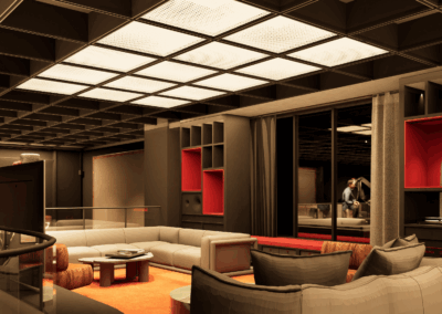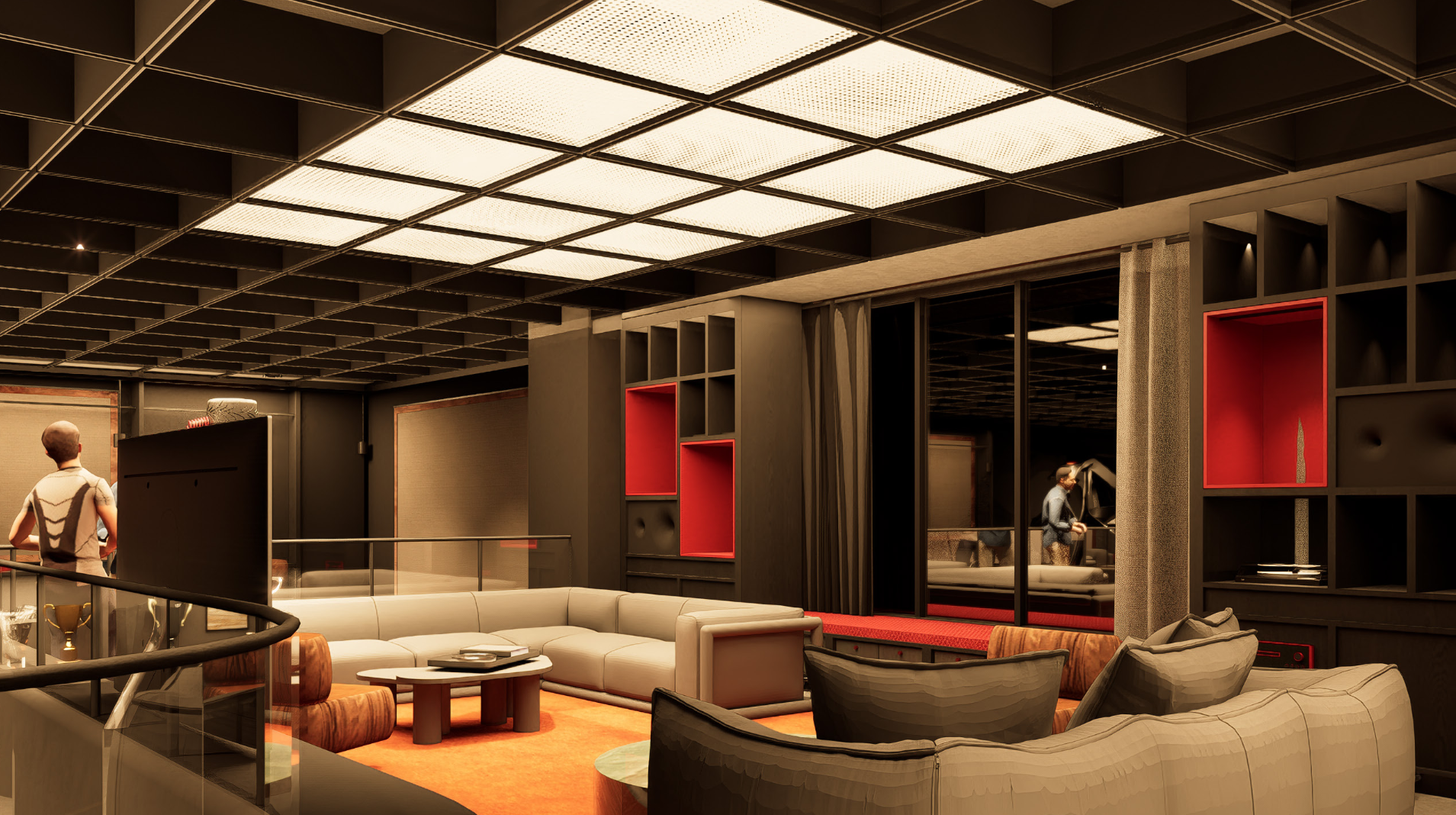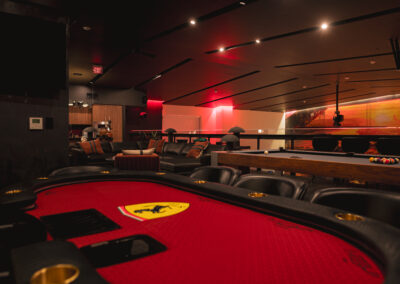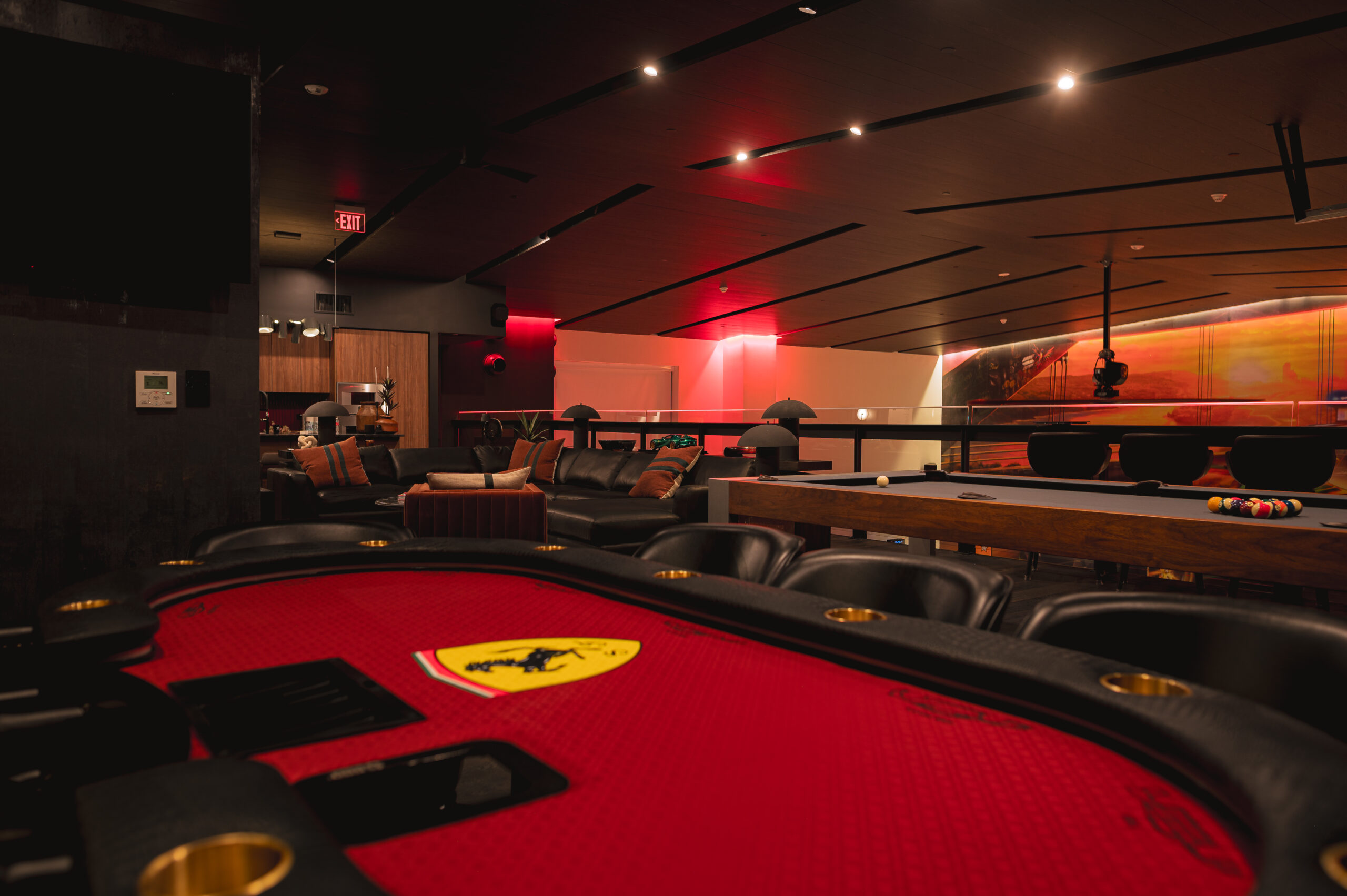 Conceived as a Ferrari-inspired retreat, the project blends the bold aesthetics of Ferrari, Grand Theft Auto, and Mad Men into a cohesive design language that fuses sophistication, performance, and style.